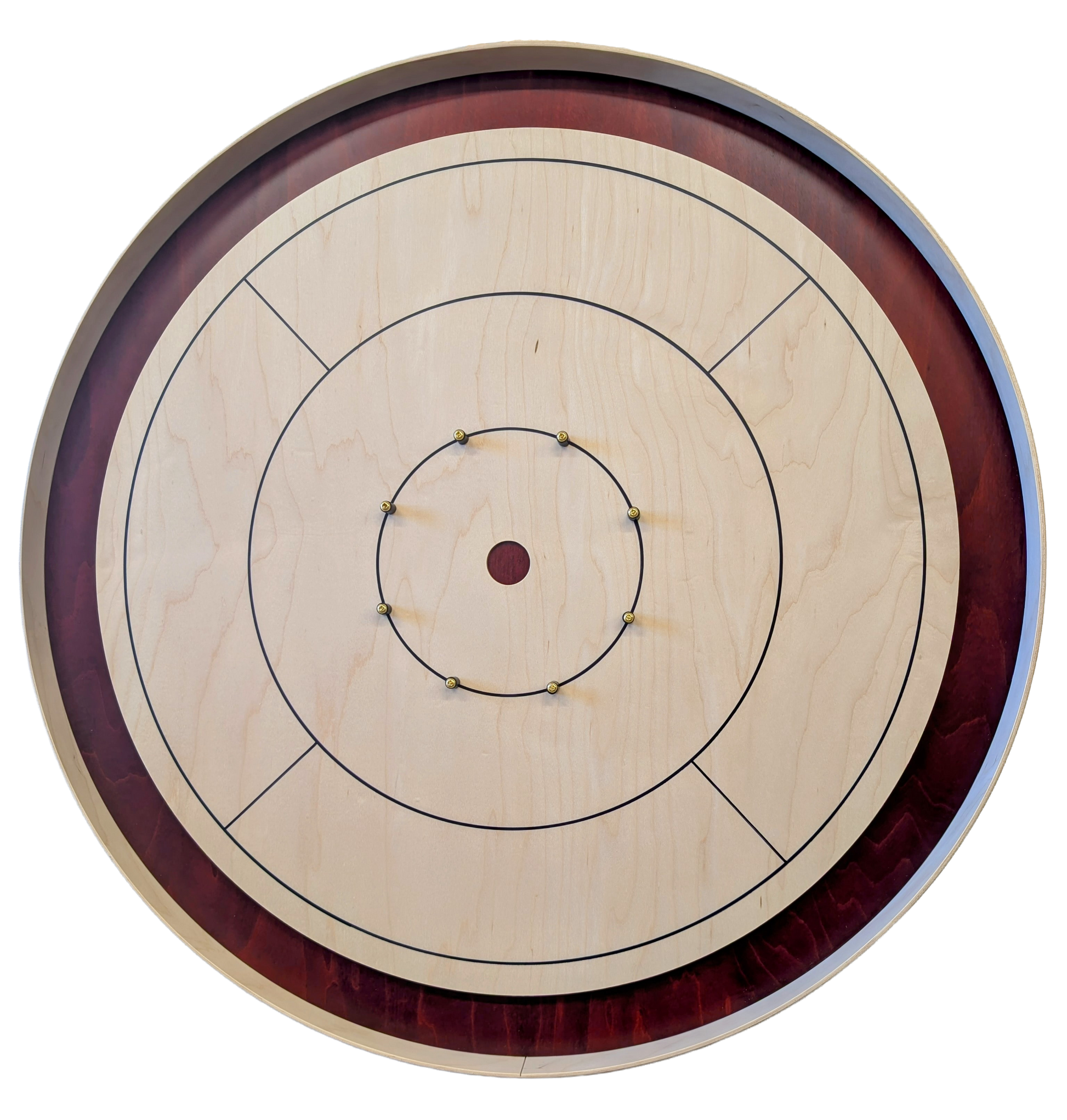 - Handmade with premium maple. The base and playing surface are both 1/2″ maple plywood (mdf core), which is all one piece. Ditch and back are maple, not raw or painted “composite board”. 1/4″ laminated maple outside rim.