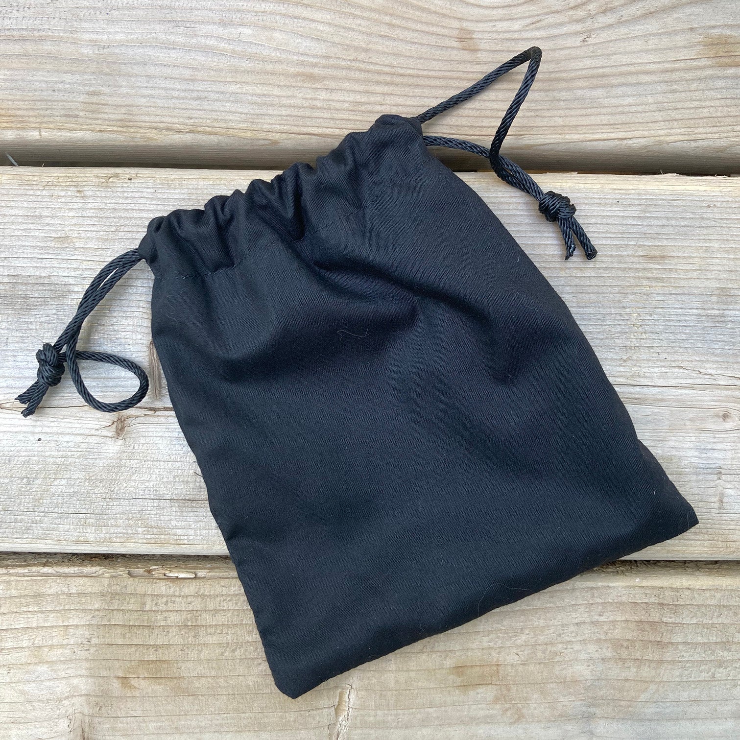 Cloth disc/checker pouch with drawstrings, handmade by Muzzies of high-quality durable fabric.